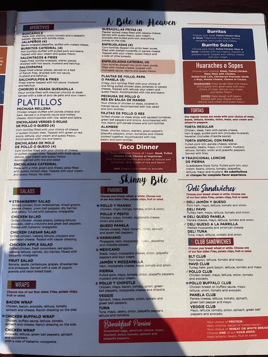 Mexican bread filled with crispy fried tortilla chips with cheese, grilled pepper, sour cream, and raw onion your choice of sauce, any style of eggs